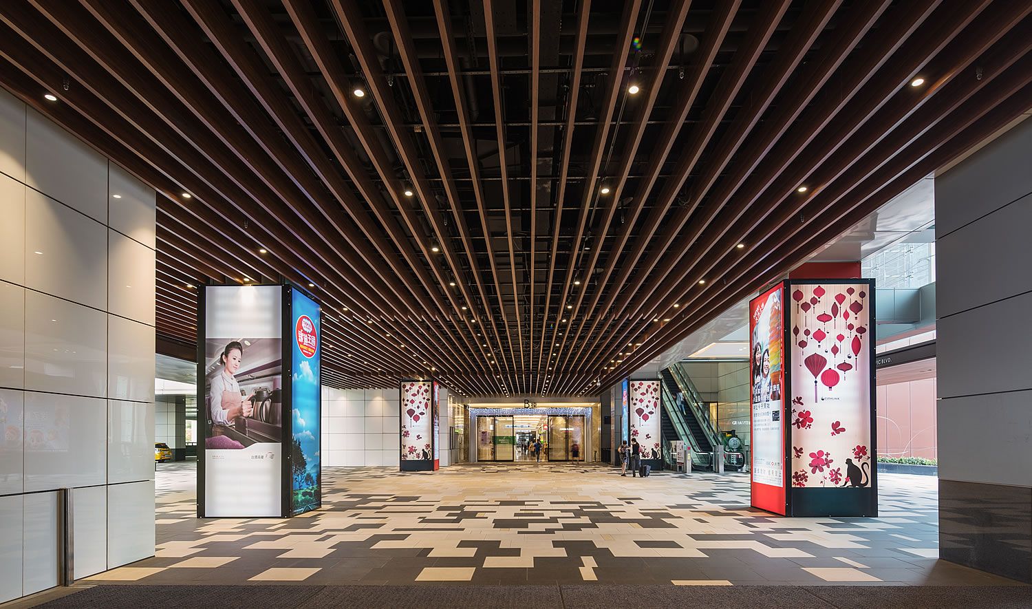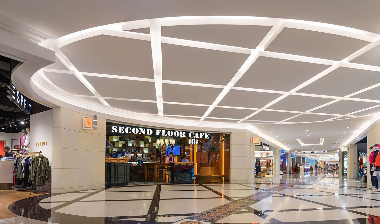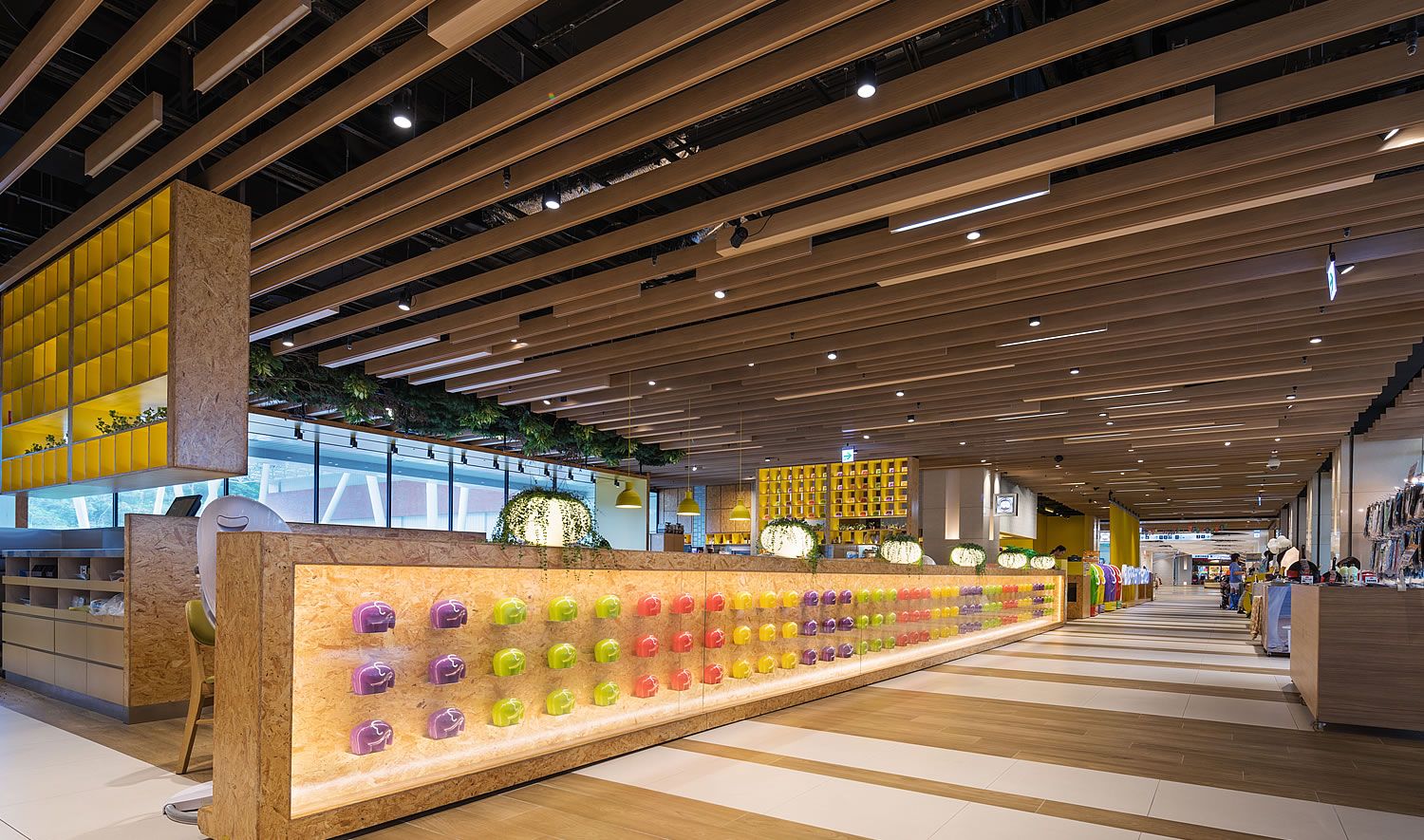 該商場以南港的區域文化作為空間概念靈感,在空間營造上建構一個紓壓、趣味的購物旅程;細部設計到執行階段並導入現場品質驗證,專案管理的落實,使作品落地實際體現初始設計氛圍。
