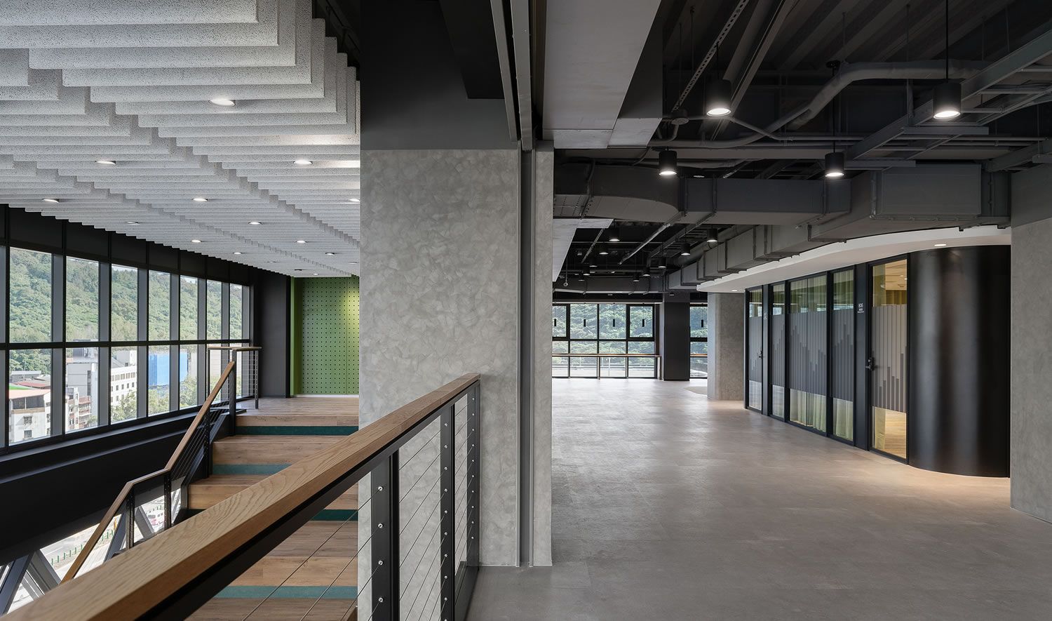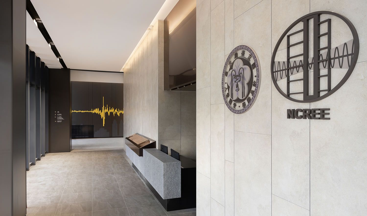 本設計作品以「地文・脈動」為主題,回應AI防災研究中心使命。靈感源自地球層圈構造,融合地震波與地質變遷意象,轉化為空間語彙,從地心、地幔、海洋、濕地、森林至銀河逐層展開。空間注重彈性與機能,從1F主牆921地震波起始,到13F開放研發區,主題牆與色彩層層串聯。建材選用木紋板、金屬、石材、軟木,搭配耐震明架天花與隔震地板,整合智能監測,展現科技與人文質感。設計延伸地震中心使命,體現堅實與前瞻精神。